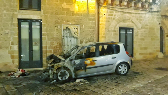 Notte di fuoco a Ruffano: incendio danneggia un’auto