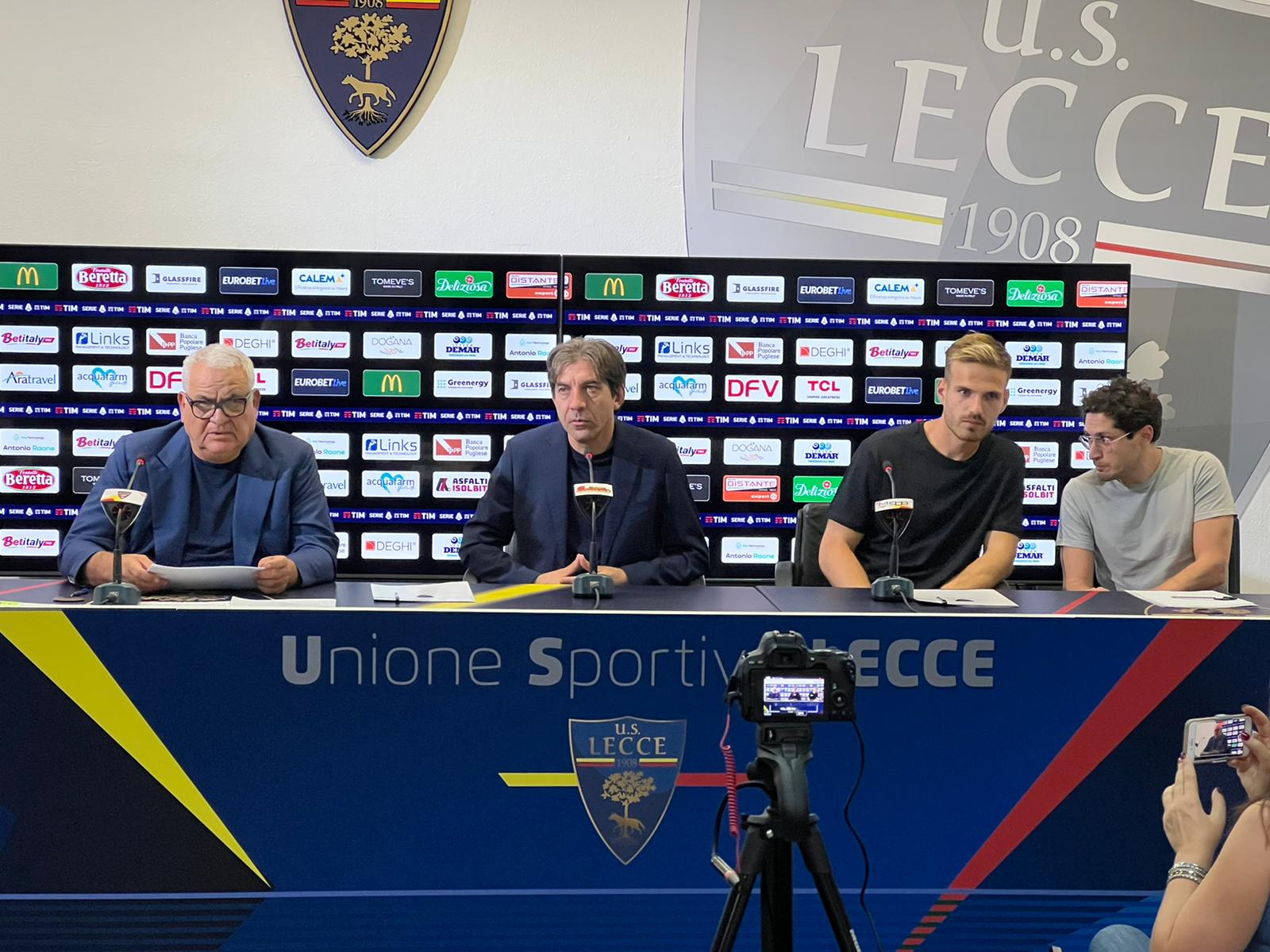 “Presentiamo un calciatore -dichiara Corvino- che abbiamo voluto e che abbiamo preso. Si tratta di un marcatore. Un classe ’97 con un esperienza importante. Ha fatto l’Europa League e la Champions. È un nazionale. È di piede destro, ma ha giocato da centrale sia destro che sinistro. Ha un fisico imponente, è un angale. Abbina forza fisica, discreta qualità tecnica e regia difensiva. Da un mese e mezzo che lavoriamo per questa trattativa. Devi lavorare per convincere certi giocatori che devono venire a Lecce”.