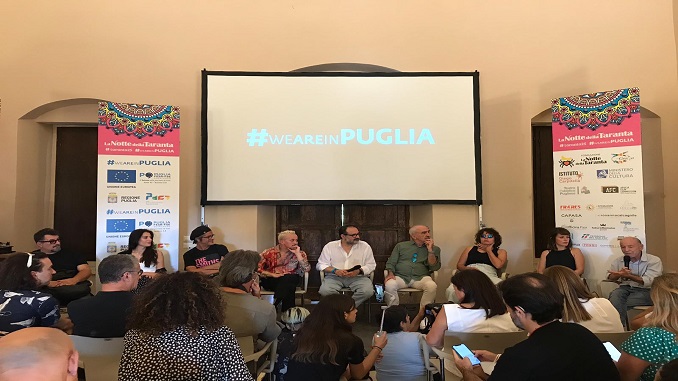 Accanto al maestro concertatore della 25esima edizione della Notte della Taranta, nel Palazzo Marchesale di Melpignano i protagonisti dell’appuntamento che dopo due anni tornerà ad abbracciare il pubblico che si prevede dai grandi numeri. Gino Castaldo e Madame condurranno la serata che sarà trasmessa su Rai 1 il primo settembre alle 23.15, il presidente della regione puglia Michele Emiliano, il presidente della fondazione Massimo Manera, la sindaca di Melpignano Valentina Avantaggiato.