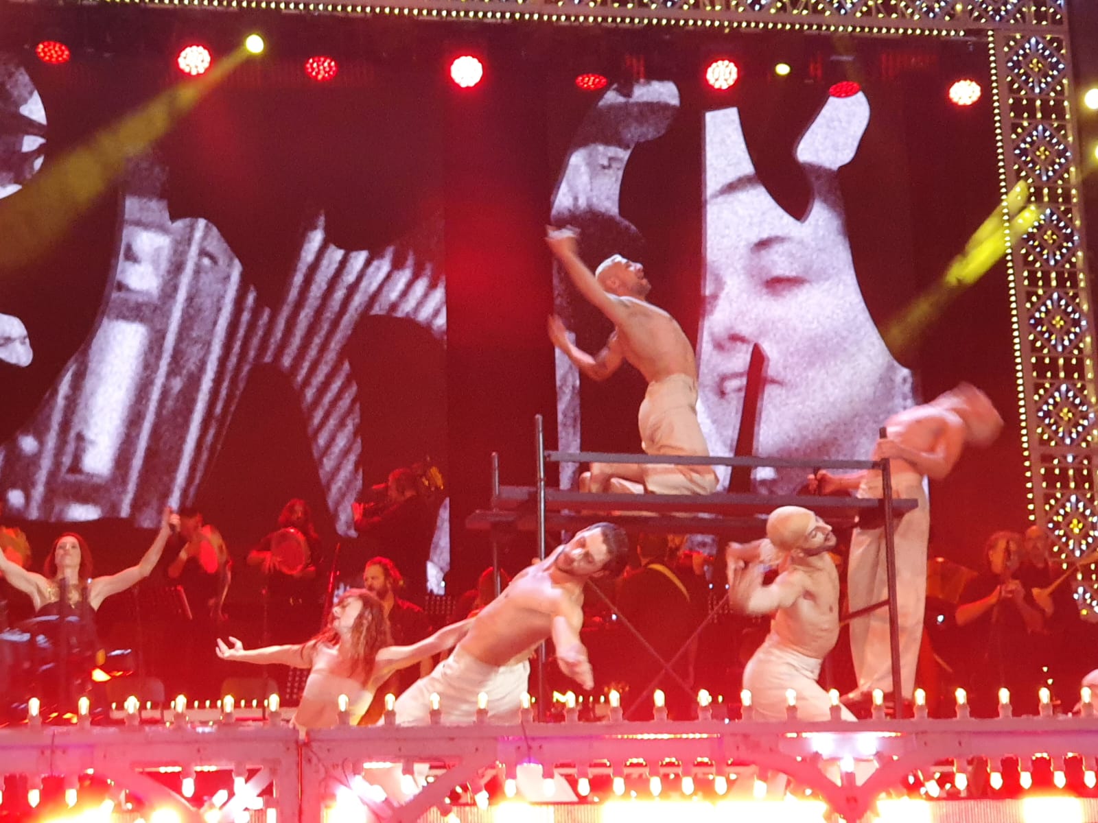 Lo scatenato corpo di ballo, guidato dalla coreografa Irma di Paola , ha messo in scena quadri inclusivi senza barriere, steccati e confini introducendo per la prima volta la lingua dei segni nell’Acqua del la Funtana, su un ritmo supportato da una forte novità di quest’anno: imponenti videowall ad amplificare tutto ciò che avviene sul palco per tutta la durata del concerto sino all’esplosione finale, come da tradizione, in Calinitta.