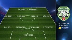 MONOPOLI (4-4-2): Vettorel; Viteritti, Fornasier, Bizzotto, Falbo; Rolando, Piccinni, Vassallo, Starita; Simeri, Montini. Allenatore: G. Laterza.
