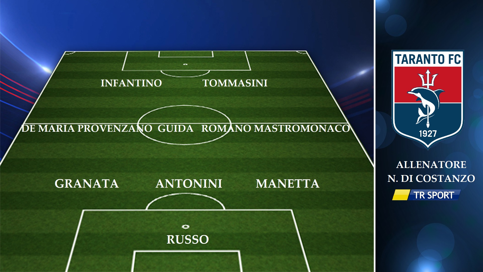TARANTO (3-5-2): Russo; Manetta, Antonini, Granata; Mastromonaco, Romano, Guida, Provenzano, De Maria; Tommasini, Infantino. All. Di Costanzo