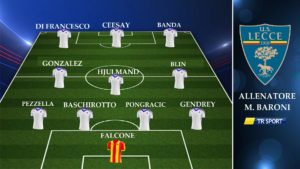 LECCE (4-3-3): Falcone; Gendrey, Pongracic, Baschirotto, Pezzella; Blin, Hjulmand, Gonzalez; Banda, Ceesay, Di Francesco. All.: Baroni.