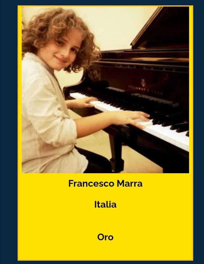 LONDRA – Francesco Marra, talento leccese , ad appena nove anni incanta Londra e conquista l’oro (secondo postyo) al London Youth Piano Competition International Value. Il giovanissimo pianista si è esibito con l’opera di Prokofiev “Montecchi e Capuleti”, concorrendo con altri 29 giovanissimi pianisti provenienti da ogni parte del mondo (China, Thailandia, Giappobne, Russia, Usa) . Davanti a lui solo il giapponese Satoshi Kamada.