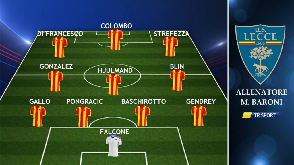 LECCE (4-3-3): Falcone, Gendrey, Baschirotto, Pongracic, Gallo; Hjulmand, Blin, Gonzalez; Di Francesco, Strefezza, Colombo. All. Baroni.