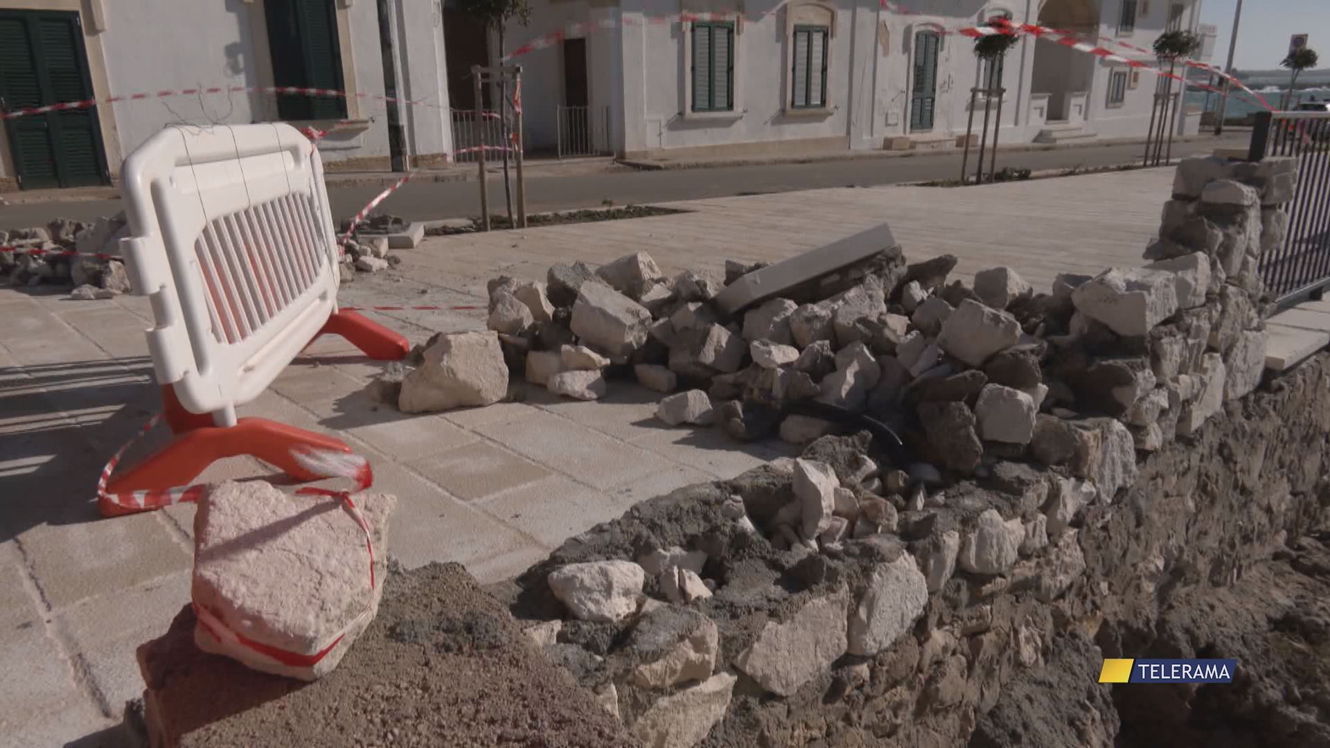 SANTA CATERINA DI NARDO’ – Ventiquattro ore dopo il maltempo che ha flagellato la costa salentina è giunto il momento della conta dei danni. Critica la situazione, in particolare, a Santa Caterina dove ha ceduto un muretto sul lungomare. La zona è stata transennata e nei prossimi giorni inizieranno i lavori per ripristinare il muretto. La conferma arriva direttamente dal sindaco di Nardo Pippi Mellone che questa mattina ha effettuato un sopralluogo nelle zone più colpite della costa jonica.