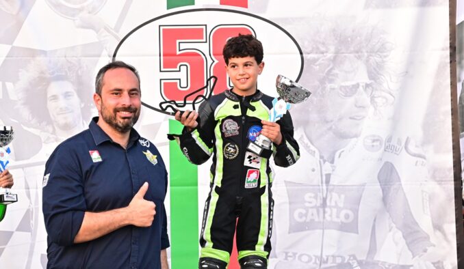 Giulianova classificandosi primo. Ma questo 2022 è stato l’anno decisivo per la sua carriera sportiva: ingaggiato dal Moto Club Spoleto, a soli 8 anni ha iniziato gareggiare a livello agonistico con le minimoto, partecipando nelle due manifestazioni più importanti a livello nazionale: Campionato Italiano Velocità e Trofeo Interregionale Marco Simoncelli, disputati nei circuiti più importanti d’Italia.