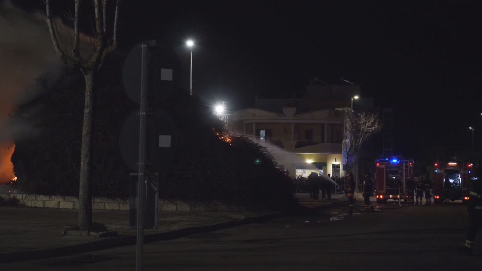 NOVOLI – Il forte vento che ha soffiato nelle ultime ore nel Salento ha creato disagi e qualche danno in diversi centri del territorio salentino. Alla Focara di Novoli, come potete vedere da queste immagini, i vigili del fuoco di Lecce hanno faticato non poco per cercare di evitare il peggio: le braci della pira monumentale, alimentate dal vento, si sono propagate nelle vicine abitazioni accompagnate da un fumo denso che ha invaso buona parte della cittadina del Nord Salento. L’intervento dei caschi rossi è servito a riportare la situazione alla normalità, complice anche l’attenuazione delle raffiche di vento. Ad ogni buon conto i vigili del fuoco monitoreranno la situazione per l’intera nottata.