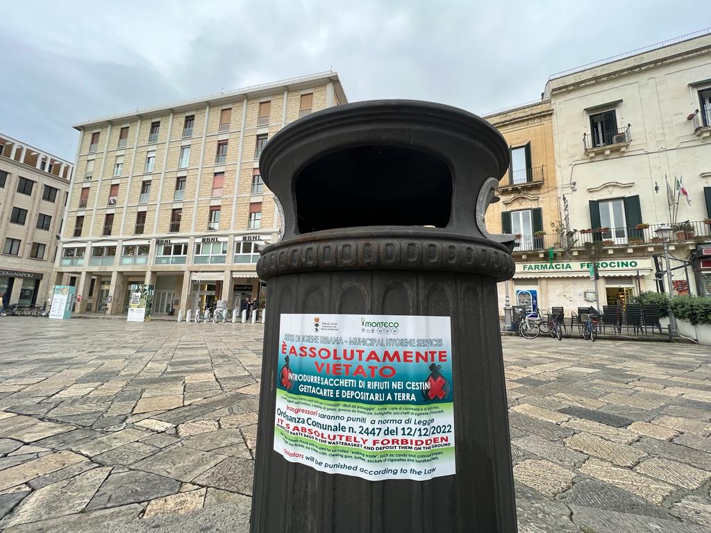 LECCE – In questi giorni, gli operatori della Monteco – su disposizione dell’Assessorato all’Ambiente – stanno completando l’affissione su tutti i cestini gettacarte di Lecce adesivi che ricordano l’assoluto divieto di conferire sacchetti di rifiuti domestici o da utenze commerciali in questi contenitori pubblici destinati esclusivamente ai piccoli rifiuti da passeggio, come carte di caramelle e di brioche, scontrini, biglietti del trasporto pubblico urbano usati, coppette da gelato, gomme da masticare, bottigliette, pacchetti di sigarette e fazzoletti.