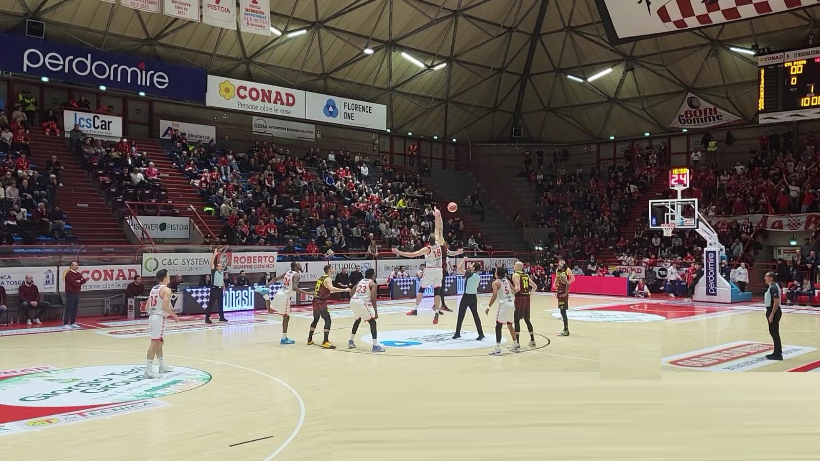 Il Toro lotta per circa 20 minuti poi la Giorgio Tesi Group Pistoia prende il sopravvento e vince meritatamente e in modo netto. Termina 98 a 77.