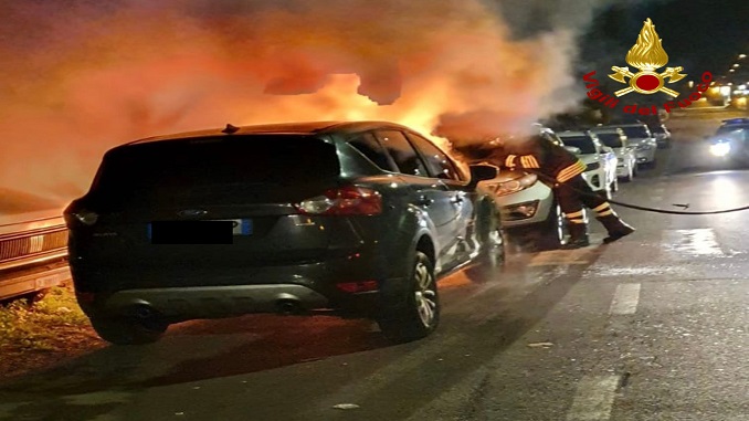 L’irraggiamento termico ha danneggiato anche una seconda autovettura, una Kia Sportage parcheggiata nerlle vicinanze, di proprietà di una donna di 57 anni.