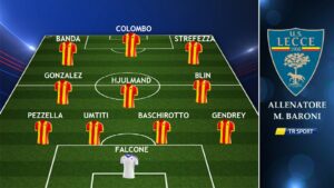 LECCE (4-3-3): Falcone; Gendrey, Baschirotto, Umtiti, Pezzella; Blin, Hjulmand, Gonzalez; Strefezza, Colombo, Banda. All. Baroni.
