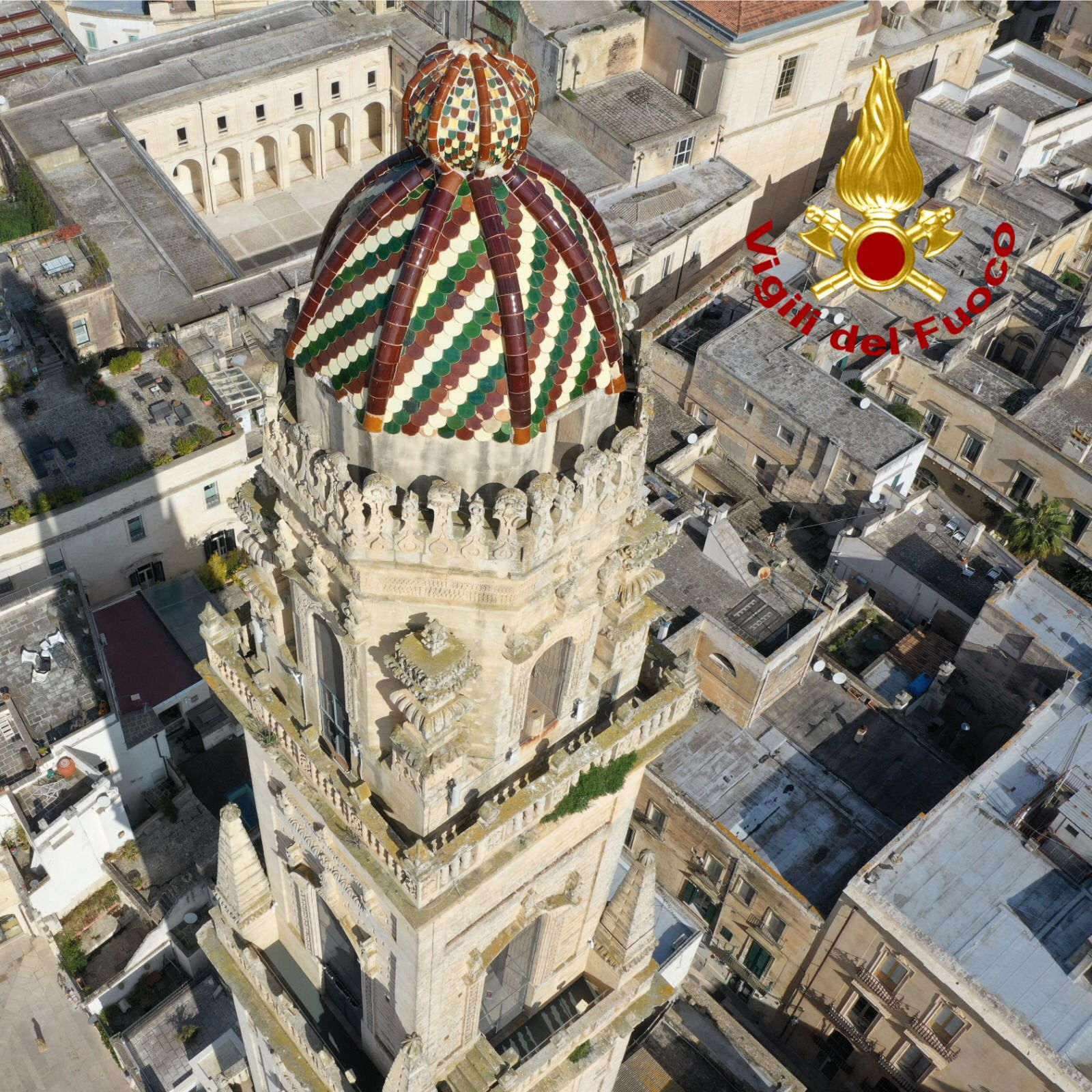 I vigili del Fuoco del Reparto SAF (Speleo Alpino Fluviale), SAPR (Sistemi Aeromobili a Pilotaggio Remoto) coordinati da un funzionario sono intervenuti presso il campanile della Piazza Duomo di Lecce per un sopralluogo dovuto al distacco di alcuni calcinacci avvenuti nei giorni scorsi.
