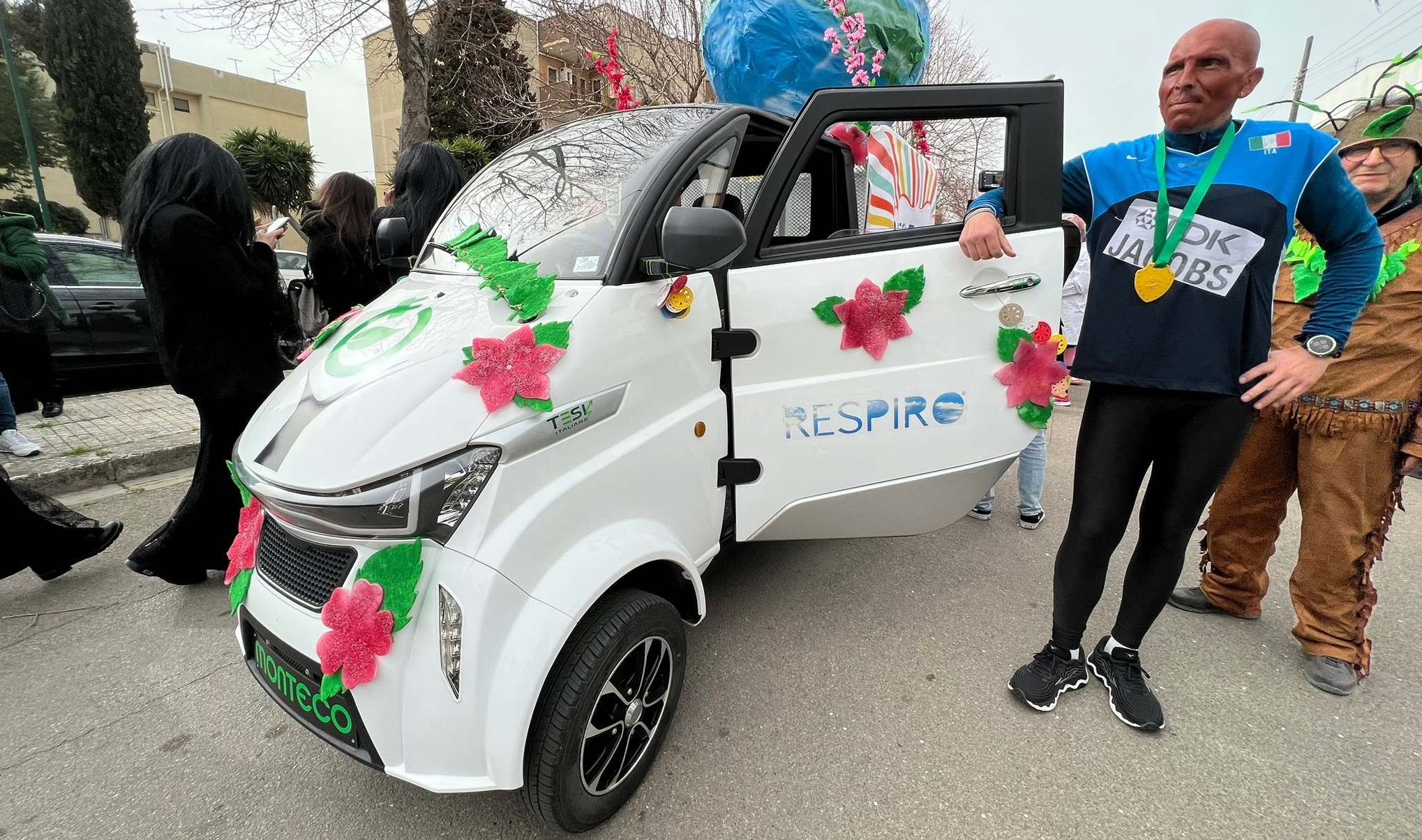 E quando si parla di ambiente l’azienda Monteco è sempre in prima linea e ha infatti partecipato con un mezzo elettrico completamente “vestito” con materiale da riuso, a simboleggiare “Il respiro della terra”.