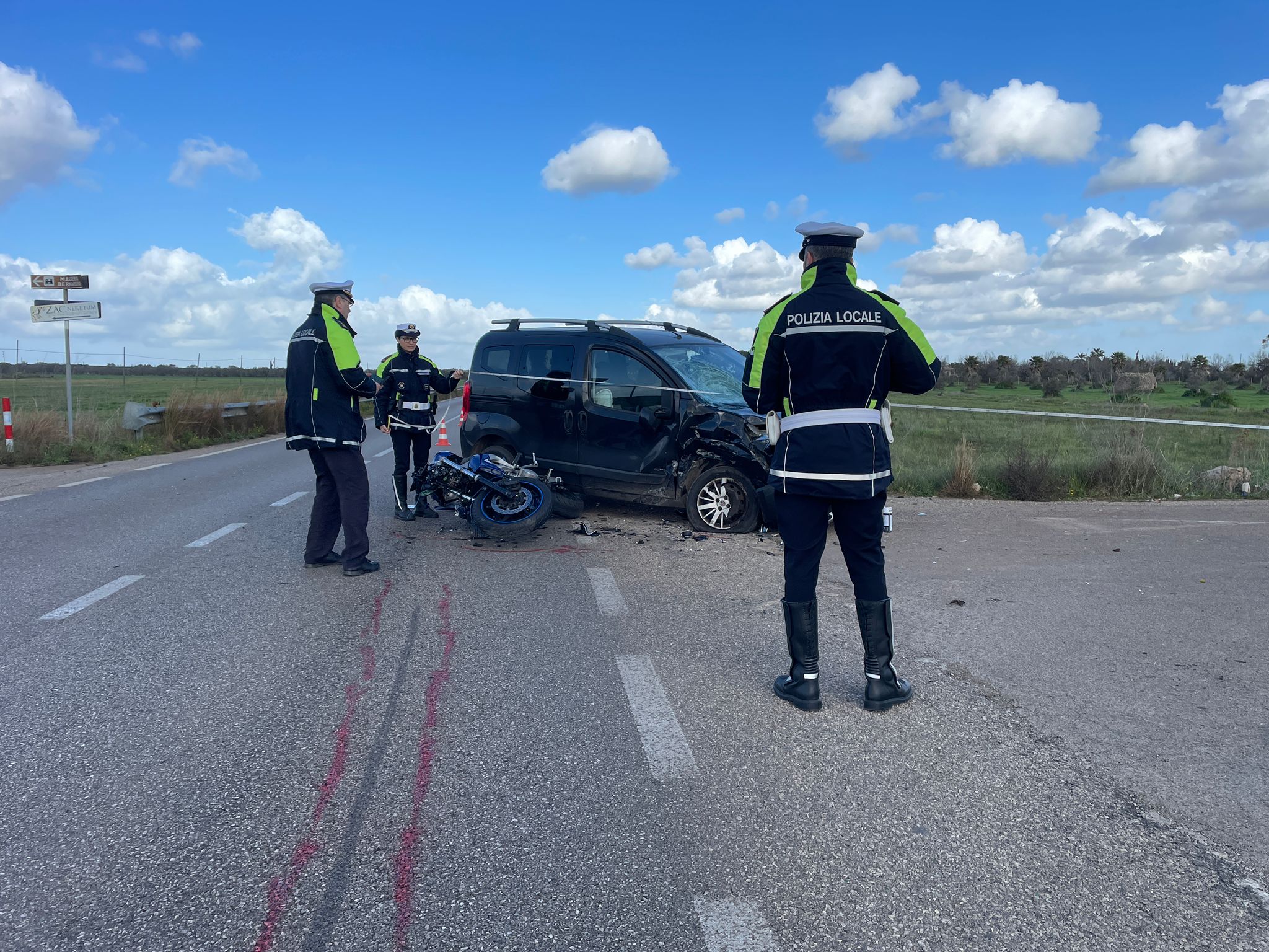 NARDO’- Un moto distrutta, le lamiere contorte di un furgone, e un casco a terra a diversi metri di distanza. Quello che resta di una tragedia che si è consumata sulla strada che collega Nardò ad Avetrana. Una frenata sull’asfalto è il tentativo disperato di evitare un impatto che si è rivelato fatale per un 35enne originario di Novoli ma da tempo residente a Nardò dove viveva con la famiglia, una moglie, una figlia di dieci anni e un figlio di poco meno di un anno. Marco Vetrugno non ha avuto il tempo di evitare l’impatto violentissimo tra la sua potente moto, una Yamaha fz6 e una Fiat Qubo. I segni dell’impatto sono evidenti e raccontano con drammaticità quei momenti. Vetrugno viaggiava in direzione Avetrana quando all’altezza di un incrocio che conduce in contrada Agnano da un lato e da un ex colorificio dall’altro, si sarebbe visto il mezzo che proveniva nel senso opposto, impegnare la sua corsia nell’effettuare una svolta a sinistra. La moto avrebbe centrato la parte anteriore del mezzo all’altezza della ruota destra, il giovane avrebbe sbattuto violentemente contro il parabrezza tanto da andare in frantumi. Sul posto sono giunti anche i sanitari del 118 che hanno tentato più volte di rianimare il ragazzo ma i tentativi sono purtroppo risultati vani. Troppo gravi le ferite riportate nell’impatto. Questo quanto emerso dai primissimi accertamenti affidati alla polizia locale di Nardò giunta immediatamente sul posto. Se la dinamica è da accertare, è certo invece che si tratta di una tragedia che ha sconvolto due comunità, Novoli paese di origine del 35enne e Nardò città in cui viveva il giovane che era conosciuto per la sua passione per le due ruote.