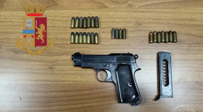 Nel corso di una serie di mirati controlli, i poliziotti hanno proceduto alla perquisizione in casa di un anziano signore, recuperando all’interno di uno stanzino una pistola marca Pietro BERETTA mod. 35 cal. 7.65 mm., con funzionamento semiautomatico con matricola abrasa e completa di caricatore monofilare da 7 colpi.