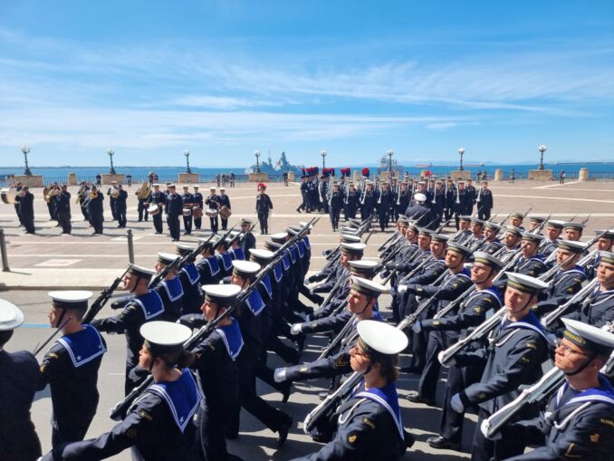 Nello schieramento, inoltre, presente una Compagnia Interforze composta da una rappresentanza delle 4 Forze Armate (E.I. – M.M. – A.M. – CC), alla fonda in Mar Grande assetti navali della Marina Militare a far da cornice alla cerimonia.