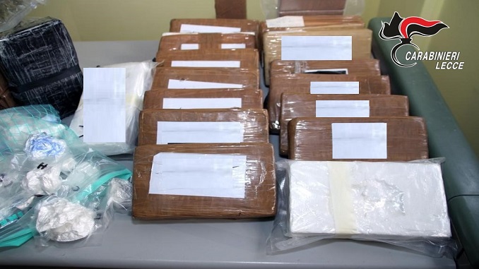 All’interno del garage di sua proprietà i militari hanno rinvenuto un ingente quantitativo di droga: 21,4 chili di cocaina, 9,120 chili di hashish, 3,110 chili di eroina e 10, 670 chili di marijuana.