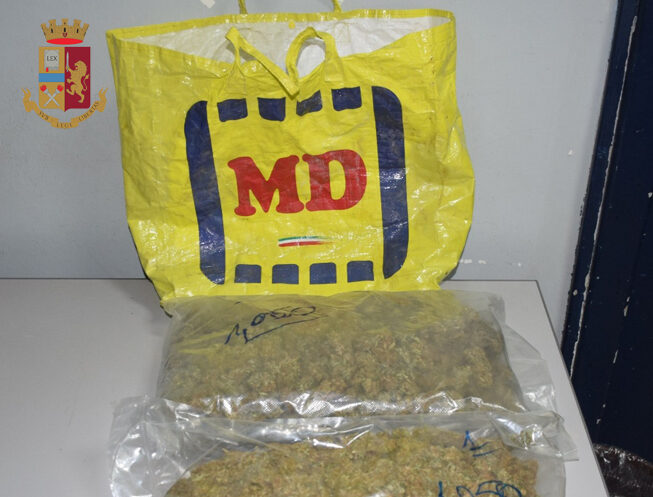 Due chili di marijuana nella busta della spesa: nei guai 34enne