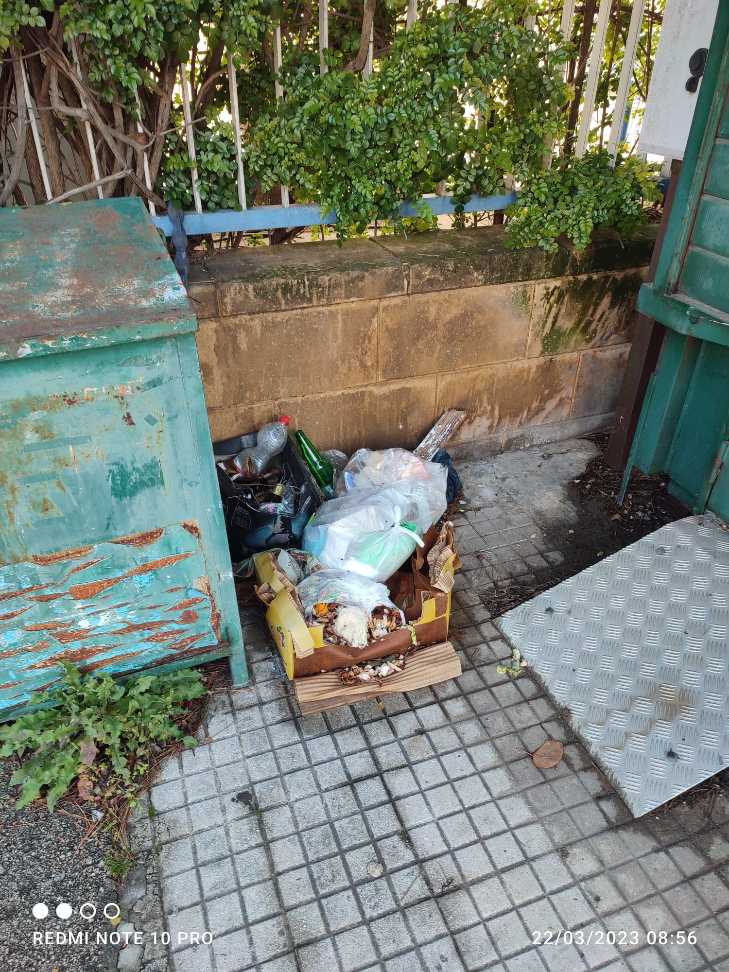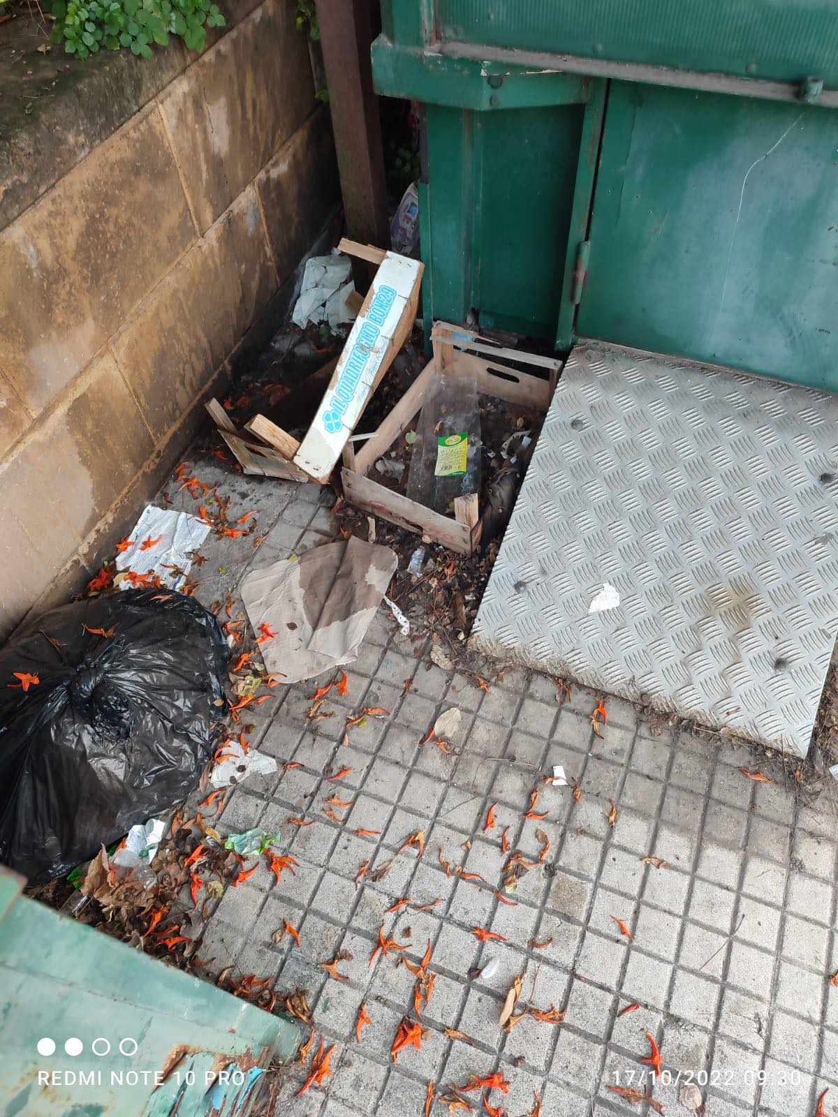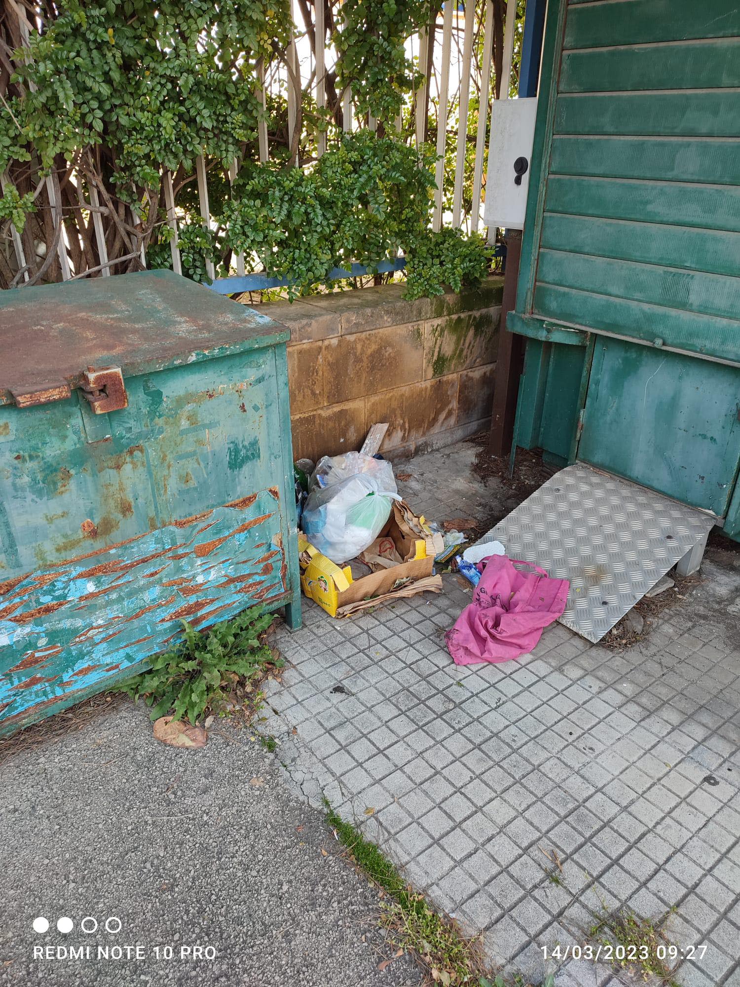 La situazione descritta dalle foto inviate: rifiuti di ogni genere, marciapiede in pessime condizioni.