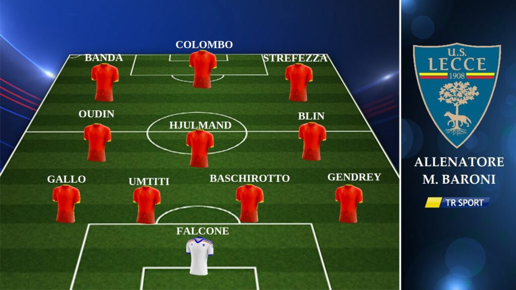 Marco Baroni può contare sull’intera rosa e potrebbe schierare Falcone in porta; Gendrey, Baschirotto, Umtiti e Gallo in difesa; a Blin, Hjulmand, Oudin; Strefezza, Colombo e Banda in avanti.