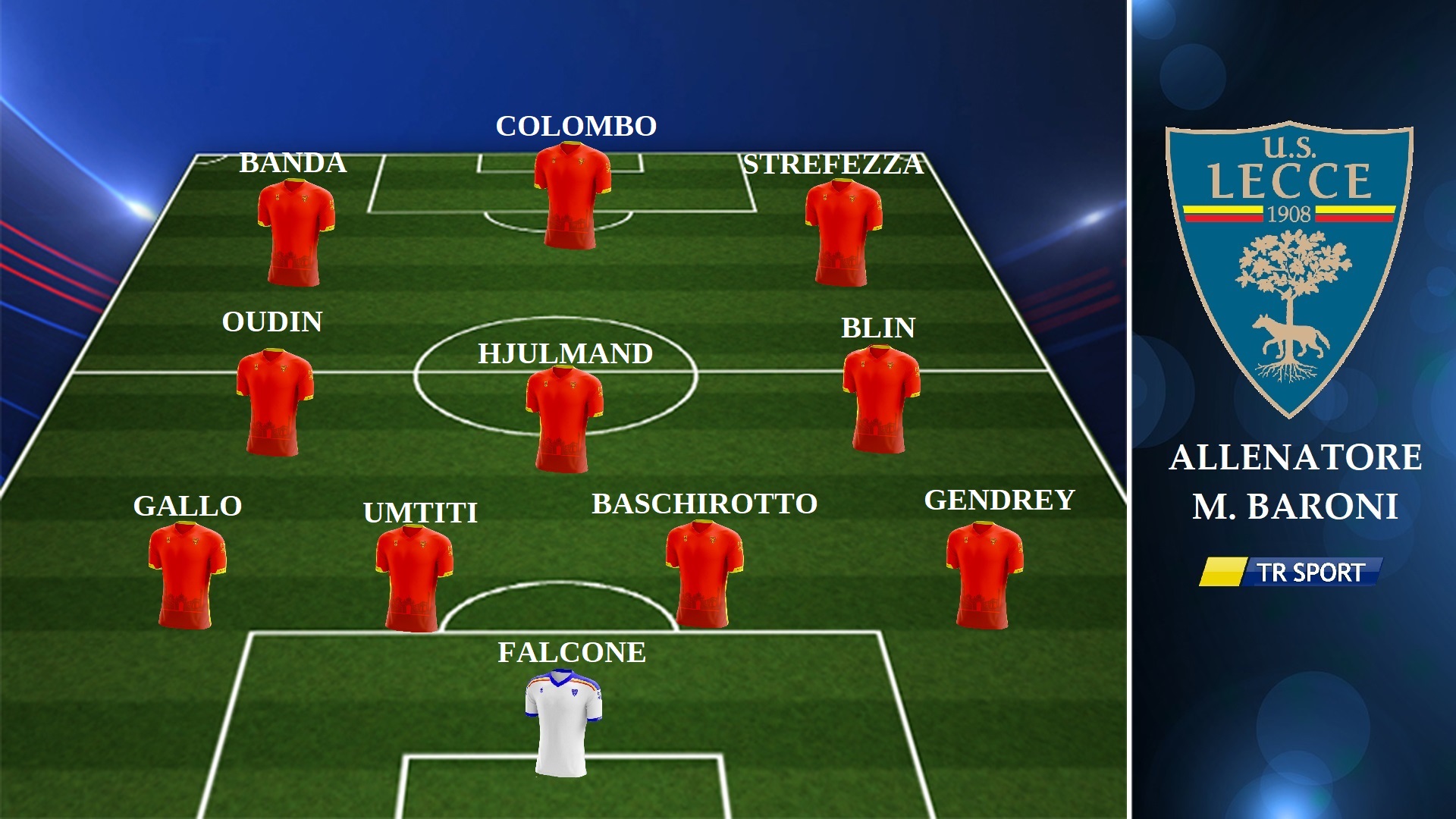 LECCE (4-3-3): Falcone; Gendrey, Baschirotto, Umtiti, Gallo; Blin, Hjulmand, Oudin; Strefezza, Ceesay, Di Francesco. All.: Baroni