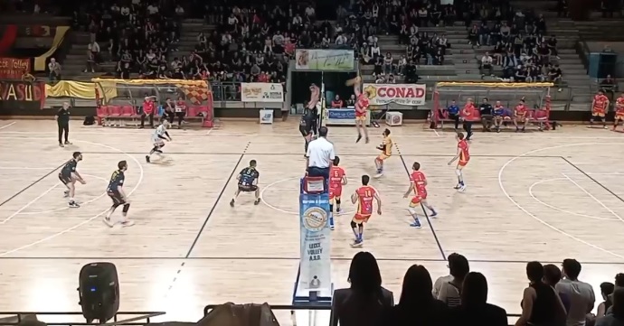 La formazione leccese, sfruttando bene il fattore campo e sostenuti da un numeroso pubblico, ha superato i salentini al tie break, aggiudicandosi la prima delle due sfide previste dal terzo turno dei play off di serie C. Più che una sfida la gara con l’Ugento ha avuto il sapore di una vera e propria finale resa ancora più entusiasmante dal pubblico delle grandi occasioni.