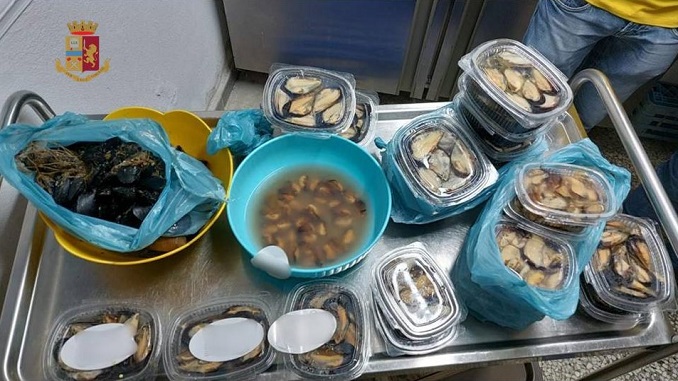 In un ristorante posizionato sul lungomare tarantino, i poliziotti hanno rinvenuto circa 32 kg di cozze nere prive di tracciabilità, mentre erano presenti altre vaschette di cozze nonostante fosse decorso il periodo di conservabilità.