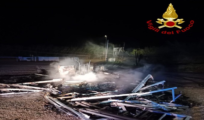 PESCOLUSE (SALVE ) – A sirene spiegate i vigili del fuoco del distaccamento di Gallipoli alle 2 e mezzo della notte hanno raggiunto Pescoluse: nello stabilimento “Lux Summer”, che sorge lungo Corso Roma, un rogo – alimentato dal forte vento – rischiava di radere al suolo tutto.