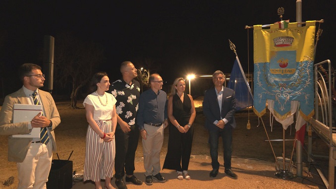 ALEZIO – Un evocativo evento in bilico tra il passato e il futuro, che punta ad omaggiare le origini della Messapica Alezio, anche grazie alla presentazione del nuovo gonfalone della città. Questa la potente cerimonia in onore dei 150 anni dall’ufficializzazione reale del nome Alezio, che si è svolta nell’antica e silente Necropoli Messapica di monte d’Elia. La serata, dall’innegabile valore simbolico e storico, è stata colorata e animata dalle musiche messe in scena dal trio chitarristico “Le 13”, tra jazz, suoni tipici del territorio e ritmi latineggianti.