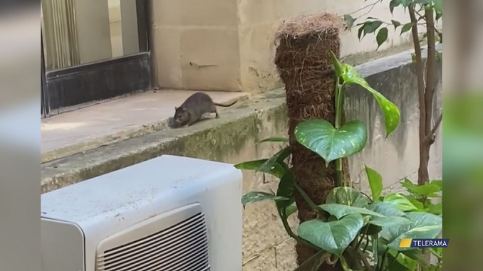 Un topo passeggia tranquillamente Palazzo Carafa. Il video