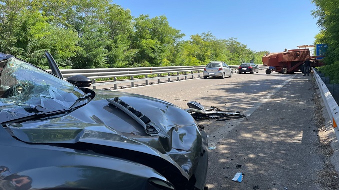 GALATONE – Paura nel primo pomeriggio, lungo la 101, la Lecce-Gallipoli. In direzione sud, all’altezza dello svincolo per Galatone, scontro tra un’auto e una mietitrebbia. Le condizioni della vettura hanno fatto pensare al peggio, ma fortunatamente la conducente ha riportato solo lievi ferite, ma è stata portata in ospedale per ulteriori controlli. Dei rilievi per la ricostruzione della dinamica dell’incidente si sta occupando la Polizia stradale.