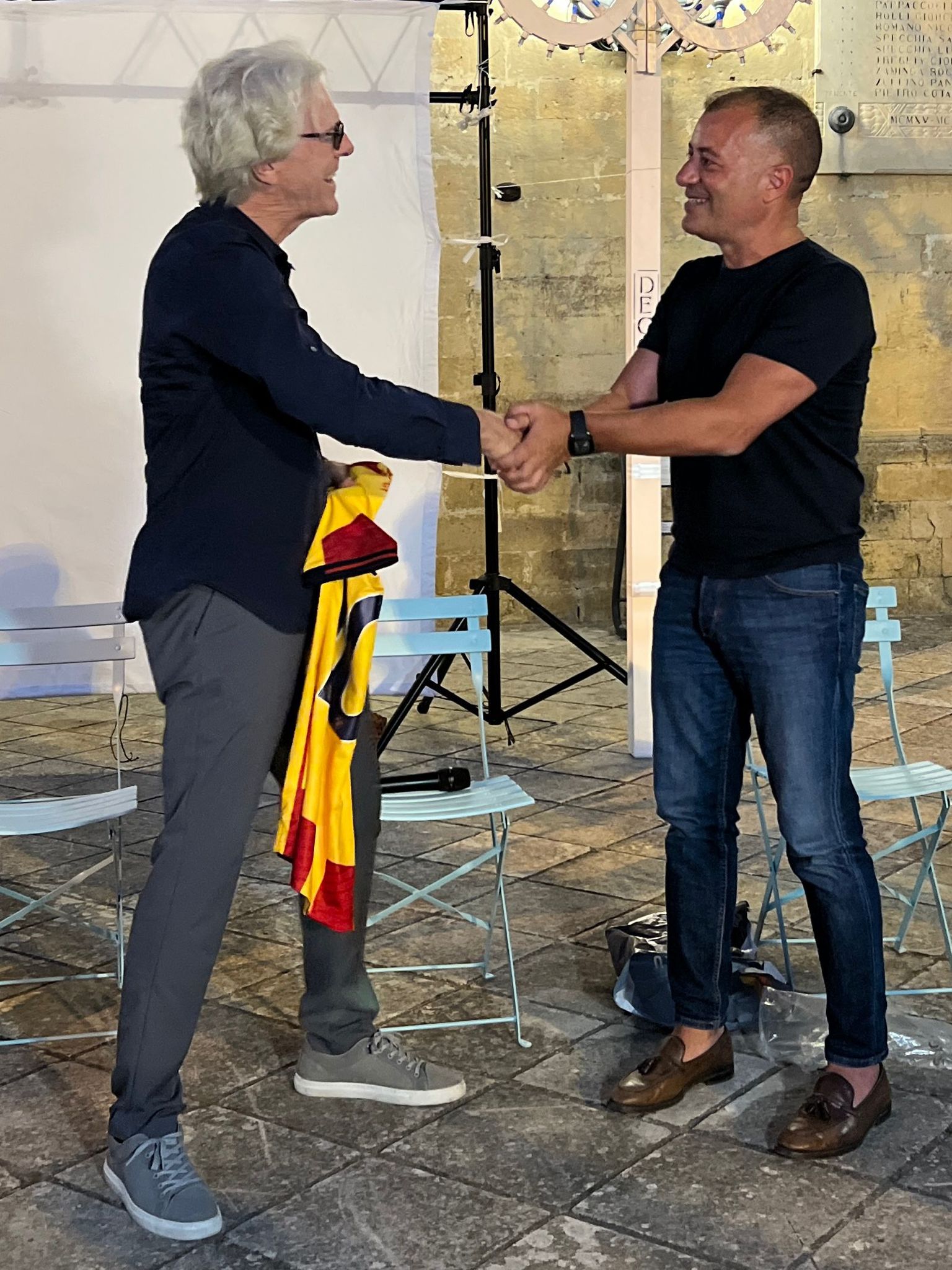 Vent’anni fa in un famoso concertone della Notte della Taranta il fondatore e batterista dei The Police, Stewart Copeland, suonò indossando la maglia giallorossa del Lecce; un gesto che rimase impresso negli occhi dei tifosi salentini e del pubblico dell’evento, immagini che fecero il giro del mondo. Ieri sera, l’artista ospite a Melpignano all’apertura del grande live della 18esima edizione del Locomotive Jazz festival, in piazza San Giorgio, ha incontrato il presidente del Lecce, Saverio Sticchi Damiani ed ha ricevuto in dono la maglia del Lecce.