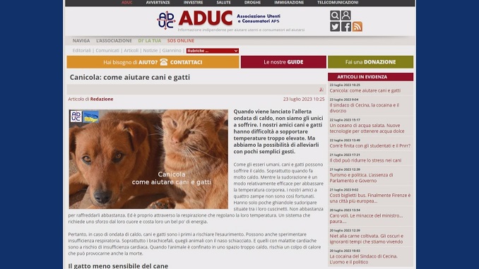 Noi possiamo aiutarli a sopportare al meglio la canicola. Ecco alcuni semplici gesti consigliati da ADUC, associazione utenti e consumatori.