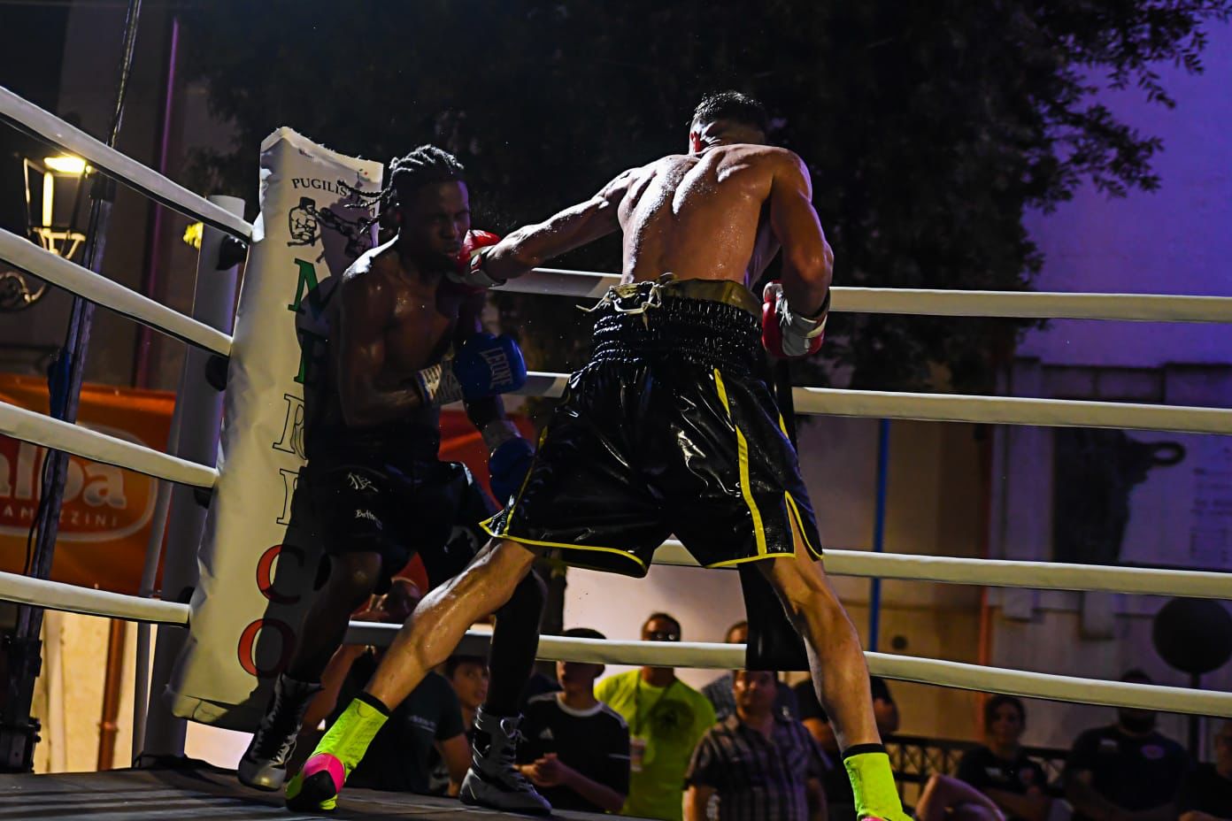 In una Piazza Vittorio Veneto di Faggiano gremitissima, l’imbattuto pugile pulsanese vince per ko e questo non non accadeva dal 2013. Arbitro del match l’internazionale Licini di Milano.