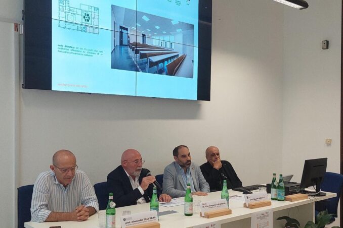 TARANTO – Presentati i prossimi lavori nella ex Banca d’Italia, sede tarantina del corso di laurea in Medicina dell’Uniba. Presenti il direttore generale della Asl Taranto Vito Gregorio Colacicco, il Sindaco di Taranto Rinaldo Melucci, il presidente della Scuola di Medicina dell’Uniba Alessandro Dell’Erba e il presidente dell’Ordine dei Medici di Taranto Cosimo Nume. A fine agosto 2023 sarà avviato il secondo lotto funzionale del progetto che, per una spesa di circa 5 milioni e mezzo di euro per i lavori e ulteriori 2 milioni per la fornitura di arredi e attrezzature, prevede il restauro e la rifunzionalizzazione del primo e del secondo piano della struttura per accogliere studenti e uffici. Grazie all’intervento, progettato da Asl Taranto insieme ad Asset, l’agenzia della Regione Puglia per lo sviluppo del territorio, si procederà al miglioramento sismico della struttura, necessario per il cambio di destinazione d’uso, e alla riconfigurazione degli spazi per garantire le attività didattiche e formative. Al primo piano, che ospitava gli ambienti di rappresentanza della filiale, quali ufficio e segreteria di direzione, sala del consiglio e biblioteca, il progetto prevede la realizzazione di quattro aule didattiche per un totale di oltre 250 posti, un’aula studio da 32 posti, una sala riunioni, l’ufficio di presidenza con la segreteria e un altro ufficio; il secondo piano, invece, ospiterà altre tre aule per le lezioni per un totale di 170 posti e due aule studio per un totale di 50 posti. Ogni piano avrà servizi igienici adeguati all’utenza e spazi necessari per la sicurezza. I lavori del secondo lotto hanno una durata prevista di circa un anno e porteranno a completamento quanto realizzato con il primo lotto che ha riguardato la realizzazione di aule, laboratori e servizi di supporto al piano rialzato e che ha trovato la propria conclusione a ottobre 2020 con l’inaugurazione e l’avvio delle lezioni del corso di laurea in Medicina. Trattandosi di un immobile di pregio storico e artistico, ogni intervento è sottoposto al parere vincolante della Soprintendenza Nazionale per il patrimonio culturale subacqueo di Taranto e, per le proprie competenze, al Comando provinciale dei Vigili del Fuoco di Taranto. I nuovi lavori prevedono non solo l’adeguamento degli spazi ma anche l’adeguamento tecnico o il potenziamento degli impianti esistenti e la realizzazione di nuove dotazioni per l’efficientamento energetico e l’uso di energie rinnovabili. Si procederà infine con l’adeguamento dei percorsi per il superamento completo delle barriere architettoniche e l’installazione degli arredi fissi e mobili e delle apparecchiature didattiche e scientifiche per le aule didattiche. Per quel che riguarda i fondi, 3,2 milioni di euro sono stanziati dal Ministero dei Beni Culturali, mentre la restante parte è finanziata dalla Regione Puglia.