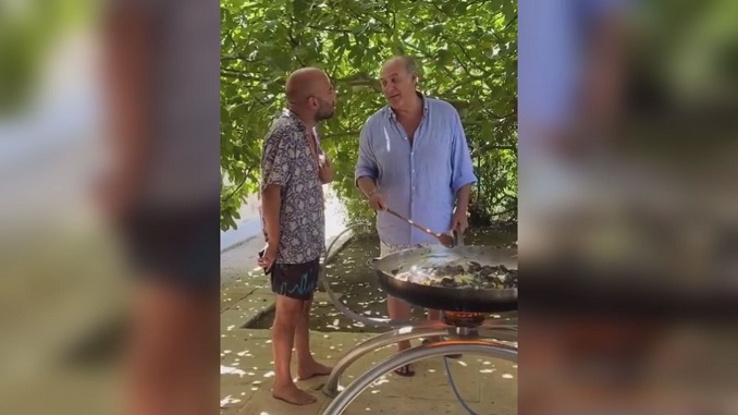 “Sono stato ingaggiato perché so che lei, maestro, oggi ha le prove”, queste le parole del conduttore intento a cucinare un’invitante pasta alle cozze per il suo celebre commensale.