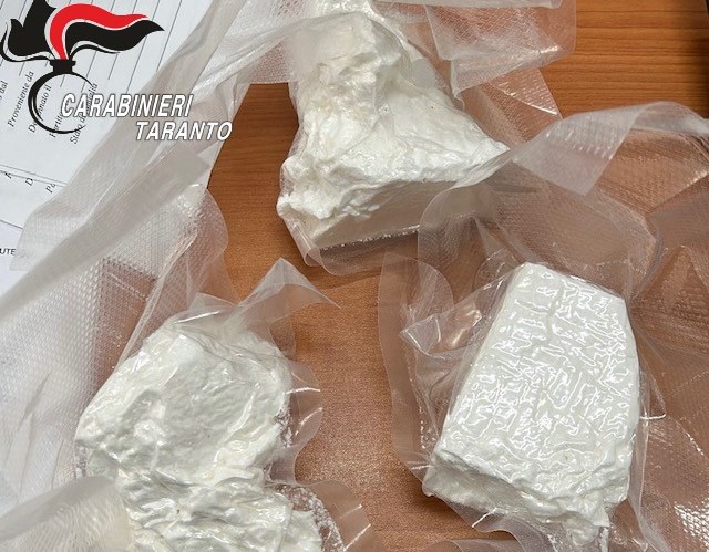 TARANTO – I Carabinieri della Sezione Operativa della Compagnia di Taranto, durante un servizio di prevenzione e repressione di reati in genere, hanno tratto in arresto un 37enne tarantino, presunto responsabile di detenzione al fine di spaccio di sostanze stupefacente. Durante il servizio nel quartiere Borgo, i militari dell’Arma hanno notato una utilitaria, ed insospettiti dall’agitazione del conducente hanno proceduto ad una perquisizione personale e veicolare, che ha consentito di rinvenire tre involucri termosaldati contenenti complessivamente circa 330 grammi di sostanza stupefacente verosimilmente cocaina, dalla quale si sarebbero potute ricavare oltre 300 dosi, destinate verosimilmente alla vendita al dettaglio nel capoluogo. La sostanza sequestrata è stata affidata al Laboratorio Analisi Sostanze Stupefacenti del Comando Provinciale Carabinieri di Taranto, per i successivi accertamenti. Il giovane, fatta salva la presunzione di innocenza fino a sentenza definitiva, dopo le formalità di rito, su disposizione dell’Autorità Giudiziaria, è stato condotto presso la Casa circondariale di Taranto.