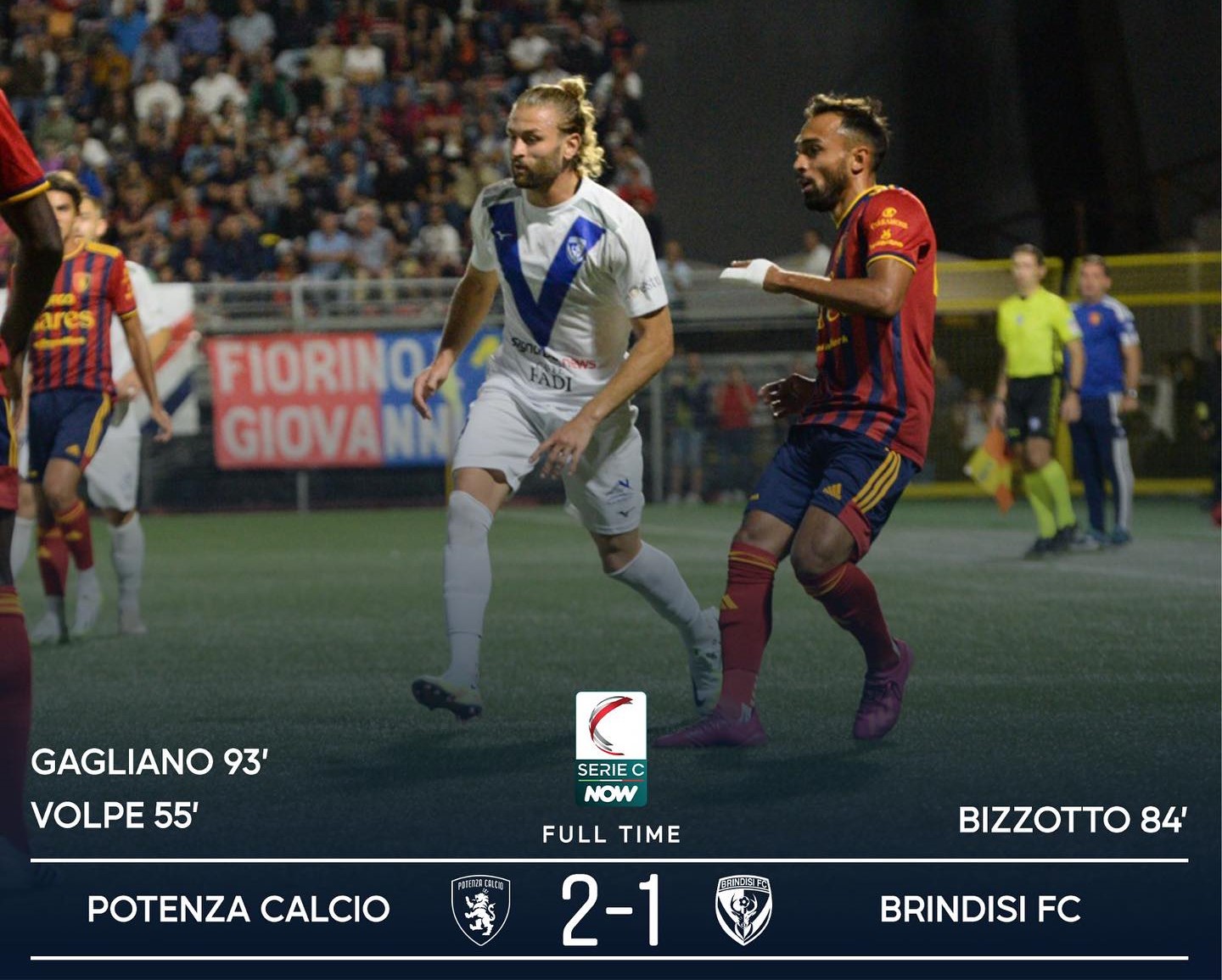 Brindisi beffato nei minuti di recupero dopo aver giocato alla pari con il più quotato Potenza. Il primo tempo è equilibrato con poche occasioni clamorose da ambo le parti. Le reti arrivano nella ripresa, all’8′ Monti stende in area Saporiti, dal dischetto si presenta Caturano che si fa ipnotizzare da Saio, ma il più lesto di tutti è Volpe che deposita in rete, per l’1-0, dopo aver invaso l’area di rigore prima della battuta del penalty.