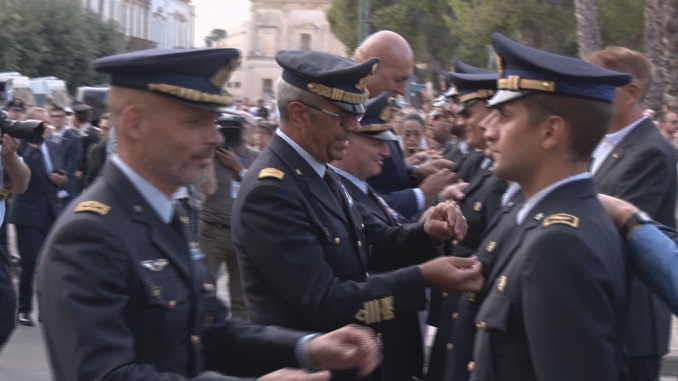 GALATINA – 49 nuove aquile pronte a spiccare il volo. Sulle note dell’inno di Mameli ha preso il via la cerimonia di consegna dei brevetti di pilota agli allievi dell’Aeronautica Militare, che quest’anno si è svolta in Piazza Dante a Galatina.