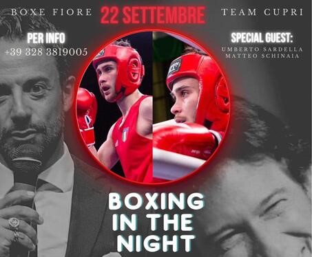 “Boxing in the night” sarà presentato dal giornalista sportivo Matteo Schinaia e come ospite della serata ci sarà la compagnia di Mudù che tra il serio e il faceto, con monologhi e sketch, regalerà un sorriso e una riflessione in merito al tema a tutti i presenti.