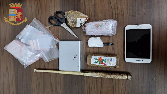LECCE – Durante un controllo notturno del territorio a Lecce, gli agenti di Polizia hanno notato notavano un veicolo, che alla vista dei poliziotti ha cercato di allontanarsi. Seguita l’auto tra le vie della città hanno visto che si fermava vicino ad un’altra vettura. All’interno del veicolo erano presenti quattro persone, tutte già noti alle forze dell’ordine: il conducente un 48enne di Lecce che era insieme al figlio diciannovenne ed altre due persone, un 43enne di nazionalità albanese e un leccese di 32 anni. Nella vettura gli agenti hanno trovato 11 grammi di cocaina, due panetti di hashish per un peso complessivo di circa 190 grammi e un bilancino di precisione, il tutto occultano all’interno della mascherina in plastica sotto la scatola dello sterzo. Rivenuto anche uno sfollagente telescopico occultato tra i sue sedili anteriori ed una forbice nel vano oggetti dello sportello lato conducente. Il 48enne si s’è assunto la responsabilità della droga e degli altri oggetti sequestrati, nella sua abitazione sono poi stati trovati altri 6 grammi di hashish e 200 bustine di cellophane trasparente, utilizzate probabilmente per confezionare le dosi di stupefacente da commercializzare. L’uomo così è stato arrestato.