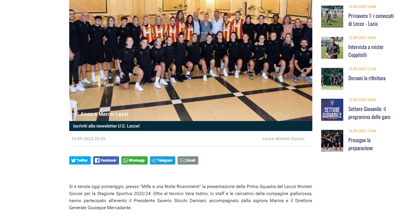 Oltre al tecnico Vera Indino, lo staff e le calciatrici della compagine giallorossa, hanno partecipato all’evento il Presidente Saverio Sticchi Damiani, accompagnato dalla signora Marina e il Direttore Generale Giuseppe Mercadante.