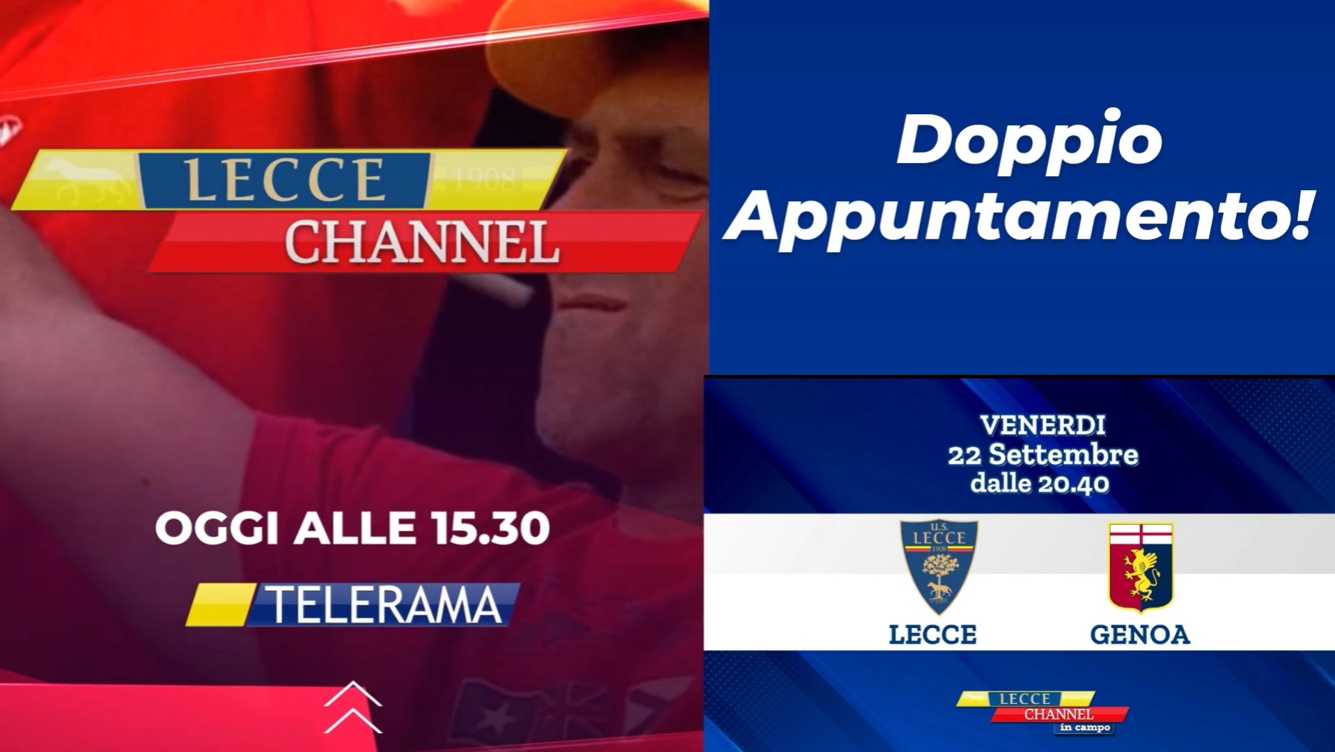 Alle 20:40, poi, l’imperdibile appuntamento con Lecce Channel in Campo dove seguire in diretta gli aggiornamenti della partita del Lecce contro il Genoa.