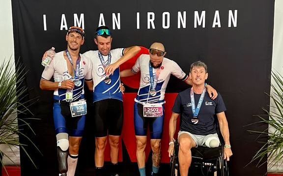 Certo, fin qui è tutto “semplice” parlando di atleti, ma la verità è che per intraprendere un’avventura simile, non sono sufficienti soltanto durissimi allenamenti di molte ore al giorno, ma occorre saper sincronizzare muscoli, nervi, mente e cuore. Per comprendere che la vera sfida poi, è sempre con noi stessi, per vedere fino a che punto possiamo spingerci, per andare oltre, per sentire che non ci sono limiti, che non abbiamo limiti, anche con una protesi in carbonio all’arto inferiore destro come per il salentino Pierluigi Maggio, o con una paraparesi spastica come nel caso di Mauro Preziosa originario di Bisceglie, unici due tra gli 11 para-atleti presenti, che sfidando il grande caldo, chilometro dopo chilometro, hanno completato il mezzo Ironman per intero, affrontando tutte e tre le discipline e dando concretamente dimostrazione del fatto che quando si è centrati anima e corpo nel raggiungere un obiettivo, niente ti può fermare.