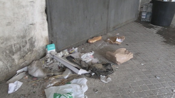Tanti, troppi i rifiuti sparsi un po’ ovunque. Sacchi dell’immondizia, sedie, bottiglie, brick di vino. Gli angoli più nascosti sono stati trasformati in una latrina a cielo aperto e gli odori nauseabondi si insinuano nelle case, già invase da scarafaggi.