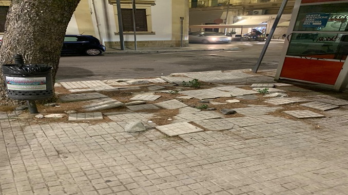 Come si vede dalle immagini che ha inoltrato, le mattonelle del marciapiede sono completamente distrutte a causa delle radici dei grandi alberi che le hanno sollevate. “Si pensa più alle piste ciclabili ma non ci si preoccupa mai di risolvere i problemi già esistenti e che creano non pochi disagi”, scrive il telespettatore. Una situazione analoga anche nella vicinissima via Mario Stampacchia, dove le radici hanno perfino sollevato una fetta di asfalto, creando una collinetta in corrispondenza dell’attraversamento pedonale. Il caso è stato anche portato all’attenzione della giunta dal consigliere comunale Andrea Pasquino, che ha chiesto chiarimenti in merito allo stato di incuria della zona e sollecita un intervento urgente. La scarsa cura delle strade, oltre a compromettere il decoro e l’immagine nella città, mette a serio rischio l’incolumità dei cittadini.