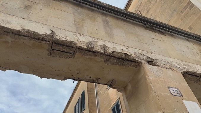 LECCE – Via Trento, case popolari, dove ogni giorno chi varca l’arco d’ingresso corre il rischio di essere investito da qualche pezzo di pietra che si stacca dalla struttura in muratura, ormai consumata e malmessa e sorretta dall’unico puntello rimasto a sostegno, visto che l’altro è stato rimosso e mai più posizionato. La rabbia è tutta nelle parole di chi vive in queste palazzina popolari, tra erbacce e sporcizia, habitat ideale per topi e scarafaggi