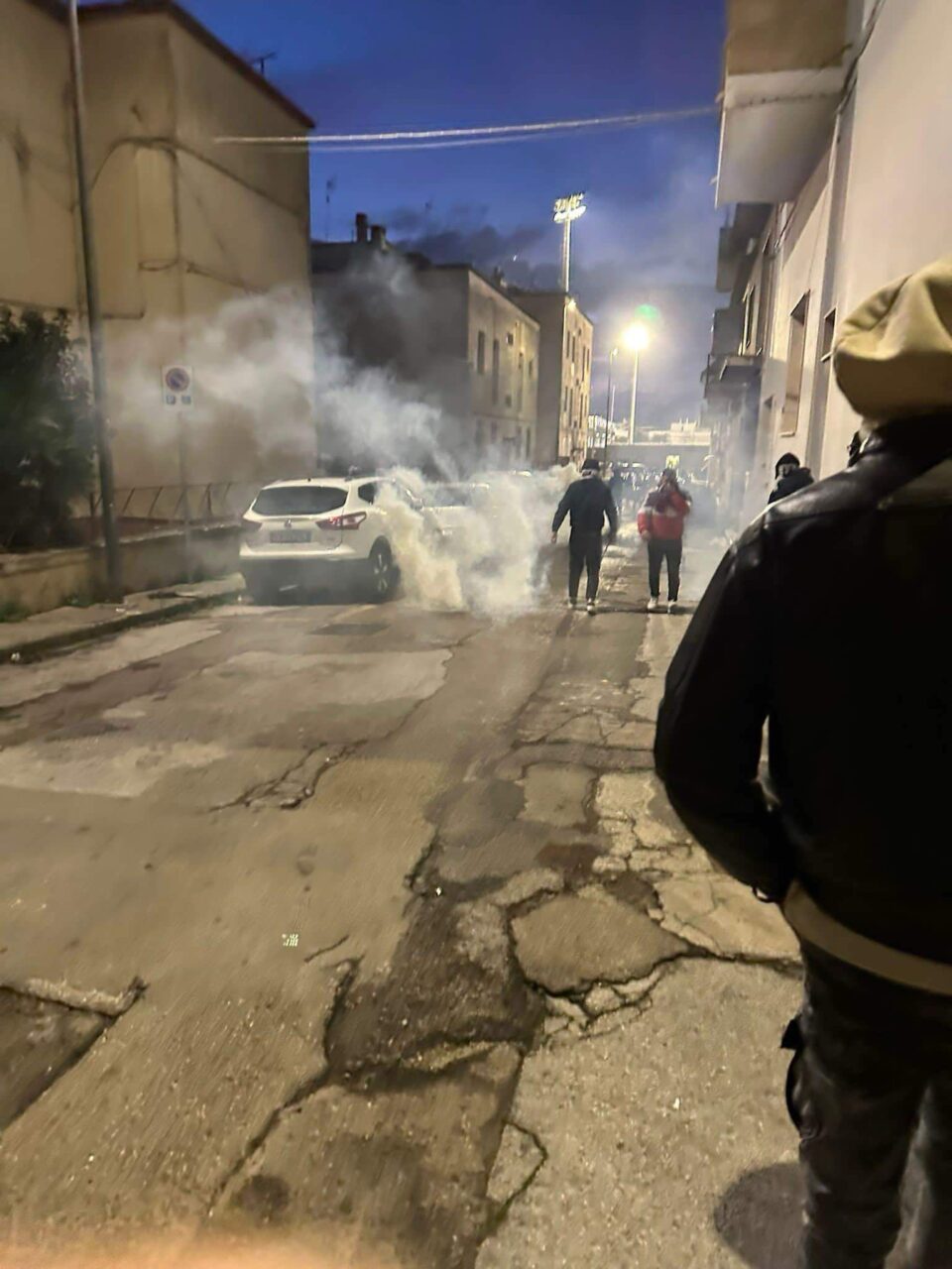 Nella stessa giornata, in occasione dell’incontro di calcio Casarano-Barletta, un gruppo dei 120 tifosi giunti a Casarano, ha forzato il filtraggio, spingendo il personale preposto e riuscendo ad entrare nell’impianto sportivo, senza di fatto essere controllato. Nel contempo, un tifoso ospite in fase di identificazione, ha fatto cadere dalla tasca un fumogeno e due grossi petardi che sono stati sequestrati. Una volta all’interno, un grosso petardo è stato lanciato e fatto esplodere provocando il ferimento ad un piede di un poliziotto in servizio, con prognosi ancora da definire.