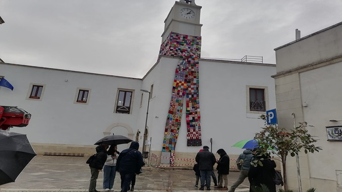 SOGLIANO CAVOUR – Tornerà presto a scandire con i suoi rintocchi la vita quotidiana dell’intera comunità di Sogliano Cavour tornerà a contare le ore, la campana dell’orologio, smontata perchè necessita di restauro. L’occasione è stata colta al volo da tutta la comunità che ha organizzato un’iniziativa che ha visto coinvolti davvero tutti. Dalla pro Loco alle associazioni del posto, l’amministrazione e tantissimi cittadini. L’idea è stata quella di realizzare un sciarpa, con cui avvolgere la torre dell’orologio, in attesa che la campana torni al suo posto. Una sciarpa realizzata dalle mani di tanti Soglianesi, che hanno recapitato già dalle prime ore centinaia di “mattonelle” realizzate all’uncinetto e poi cucite tutte insieme. Un’opera che rappresenta appieno l’operosità , la voglia di collaborare per un unico obiettivo, un modo per prepararsi al meglio alle festività.